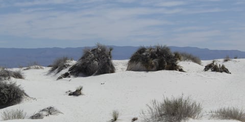 In the morning, we were off to White Sands for our impromptu side trip! Shortly out of town, I noticed that in our excitement, we forgot to buy fuel! We made it to the visitors center, but the impending trip to find fuel was foremost on our minds, so we drove on. We made it to Alamogordo with ten miles of fuel to spare. Refueled and reinvigorated, we went back to White Sands NP. It was worth the trip. We headed up the road past miles of white sand dunes. At first they were covered with plant life, but that thinned out further into the park.